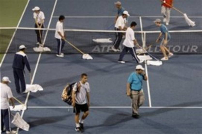 Дождь так и не прекратился, а потому игроки, на время возобновив матч, вынуждены были снова покинуть корт уже при счете 7:5, 0:0 и 40:15 на подаче Джоковича.