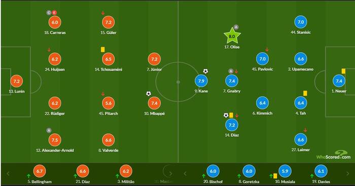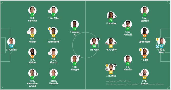 У матчі з Баварією Лунін зробив п'ять сейвів, три з яких із меж штрафного майданчика, один винос і одне перехоплення, а показник голів, яким запобіг воротар, склав 0,43.