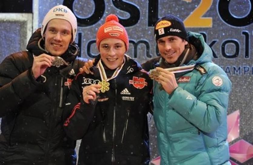 А в прыжках с трамплина тоже такая интрига, ну просто суперская интрига. Сборная Австрии выиграла Турне четырех трамплинов (Моргенштерн), общий зачет Кубка мира (Моргенштерн), Кубок наций, а теперь золото (Моргенштерн) и серебро (Кофлер) на чемпионате мира. Интересно, Александру Поинтнеру еще не надоело радоваться? Лично я порадуюсь за очередную медаль Адама Малыша.